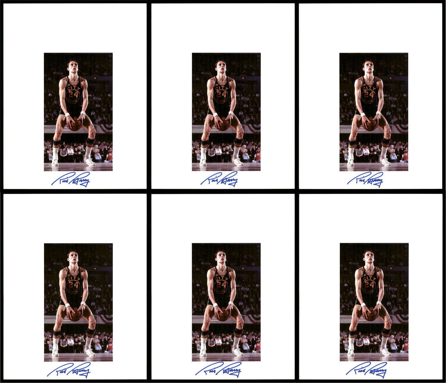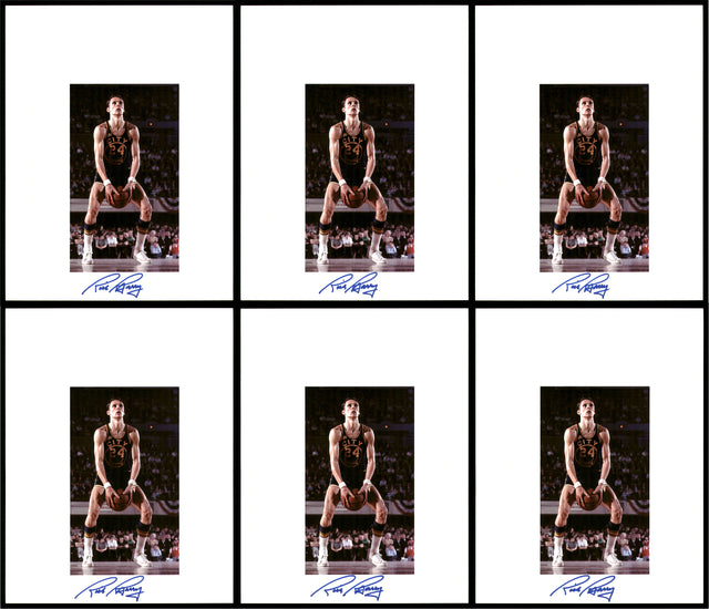Own a piece of basketball history with this 12-count lot of 8.5x11 signed photos autographed by Hall of Famer Rick Barry. A true legend of the game, Barry is celebrated for his incredible scoring ability, precise free-throw shooting, and his unforgettable contributions to the Golden State Warriors and the ABA. These signed collectibles are perfect for dedicated fans, memorabilia collectors, and sports history enthusiasts.