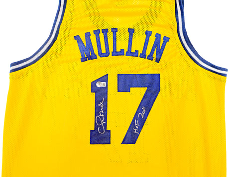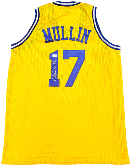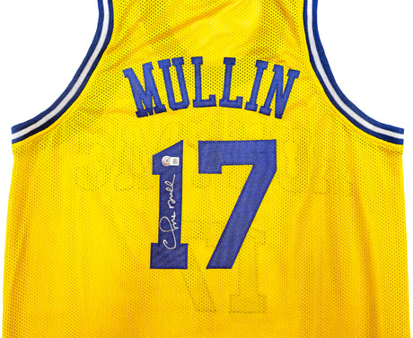 Golden State Warriors Chris Mullin Autographed Yellow Jersey Beckett BAS Witness Stock #232593