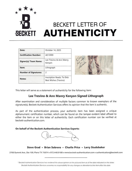 Lee Trevino & Ann Manry Kenyon Authentic Signed 18x22 Lithograph BAS #AE13999