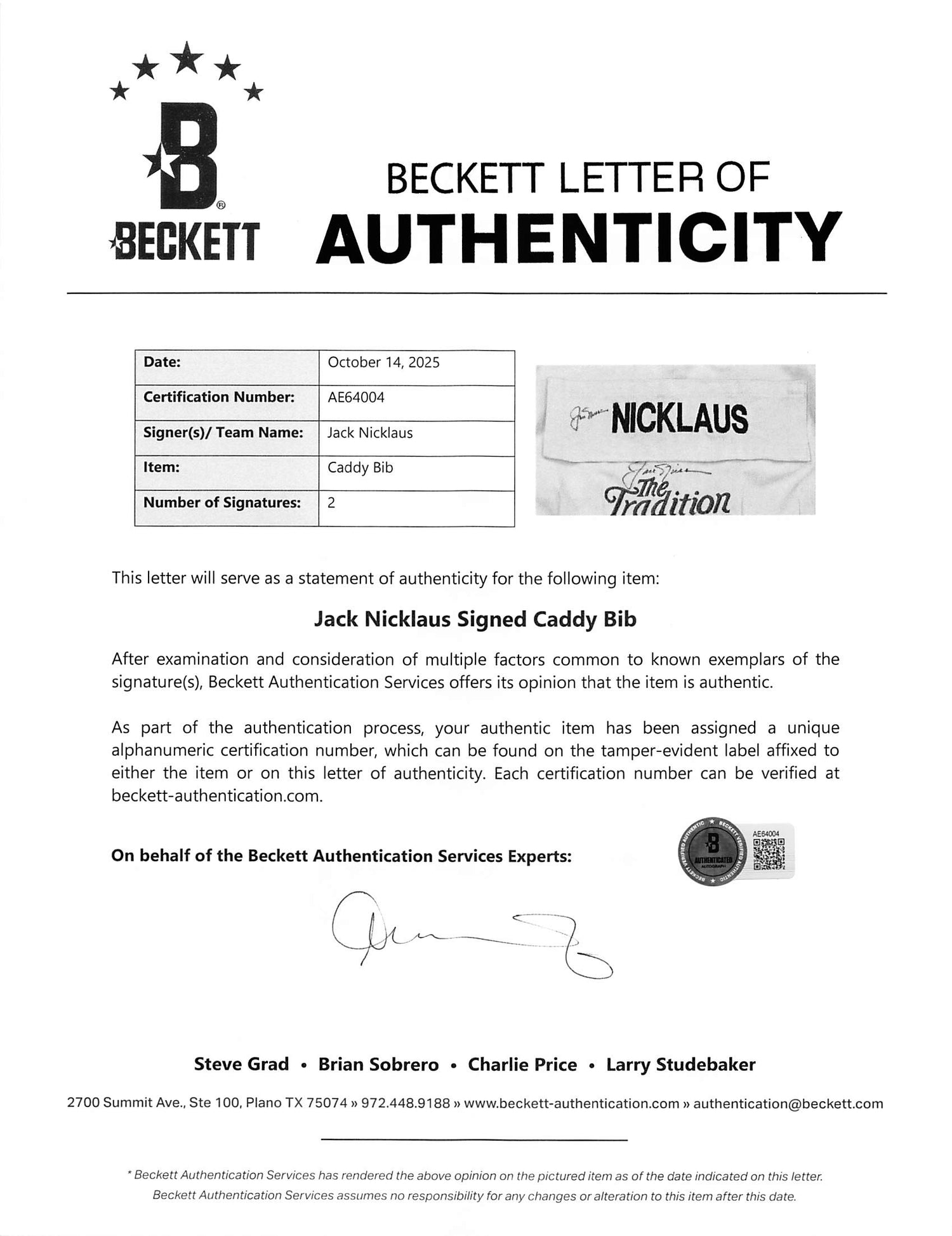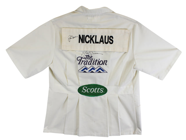 - Personally hand-signed twice by Jack Nicklaus – a rare dual autograph on an officially issued The Tradition Caddy Bib Shirt