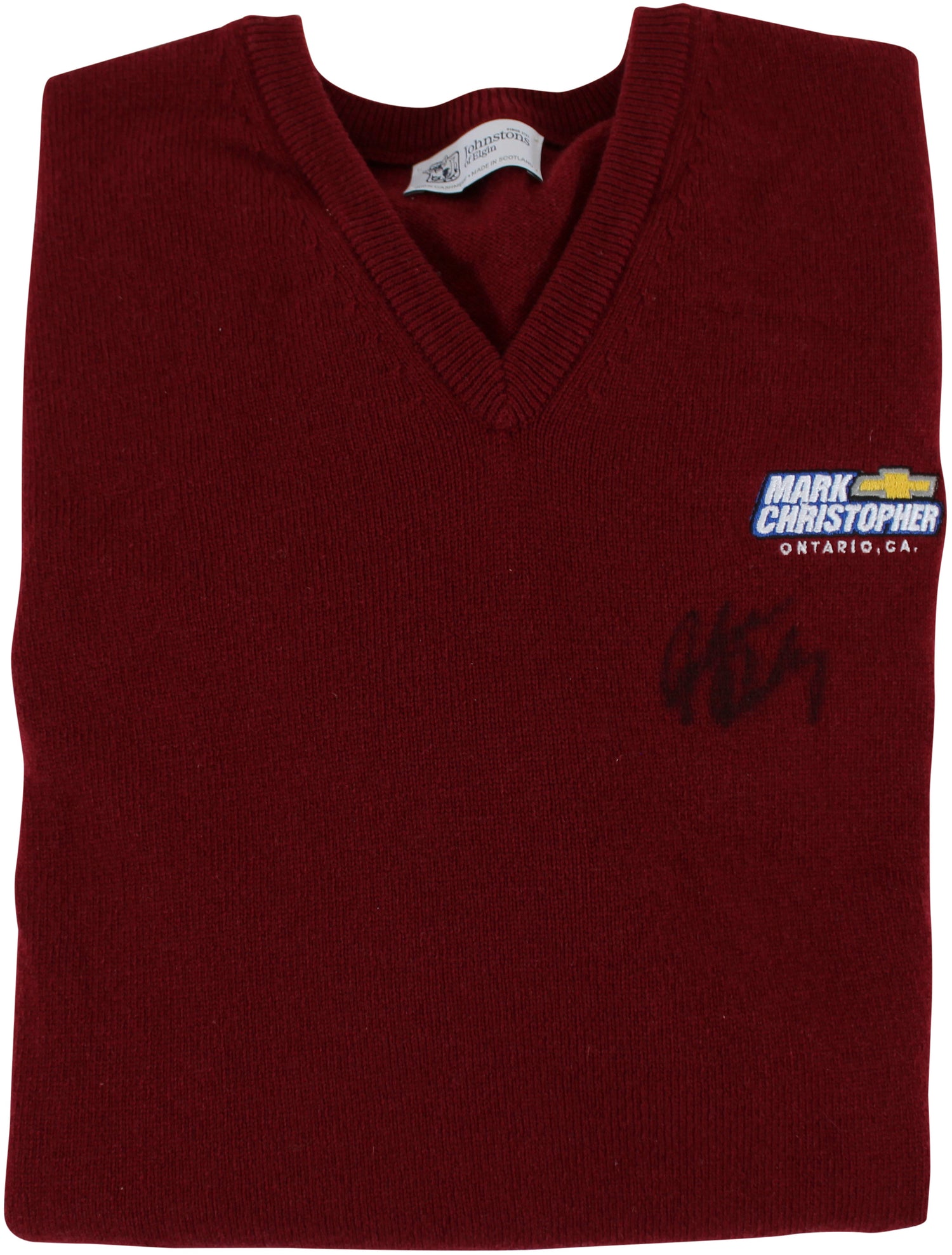 This Autographed Match-Worn Johnstons of Elgin Cashmere Sweater has been personally signed by legendary golfer John Daly. A unique collector’s item, this sweater was worn by Daly during competition and originates directly from his personal collection, making it a rare piece of golf history.