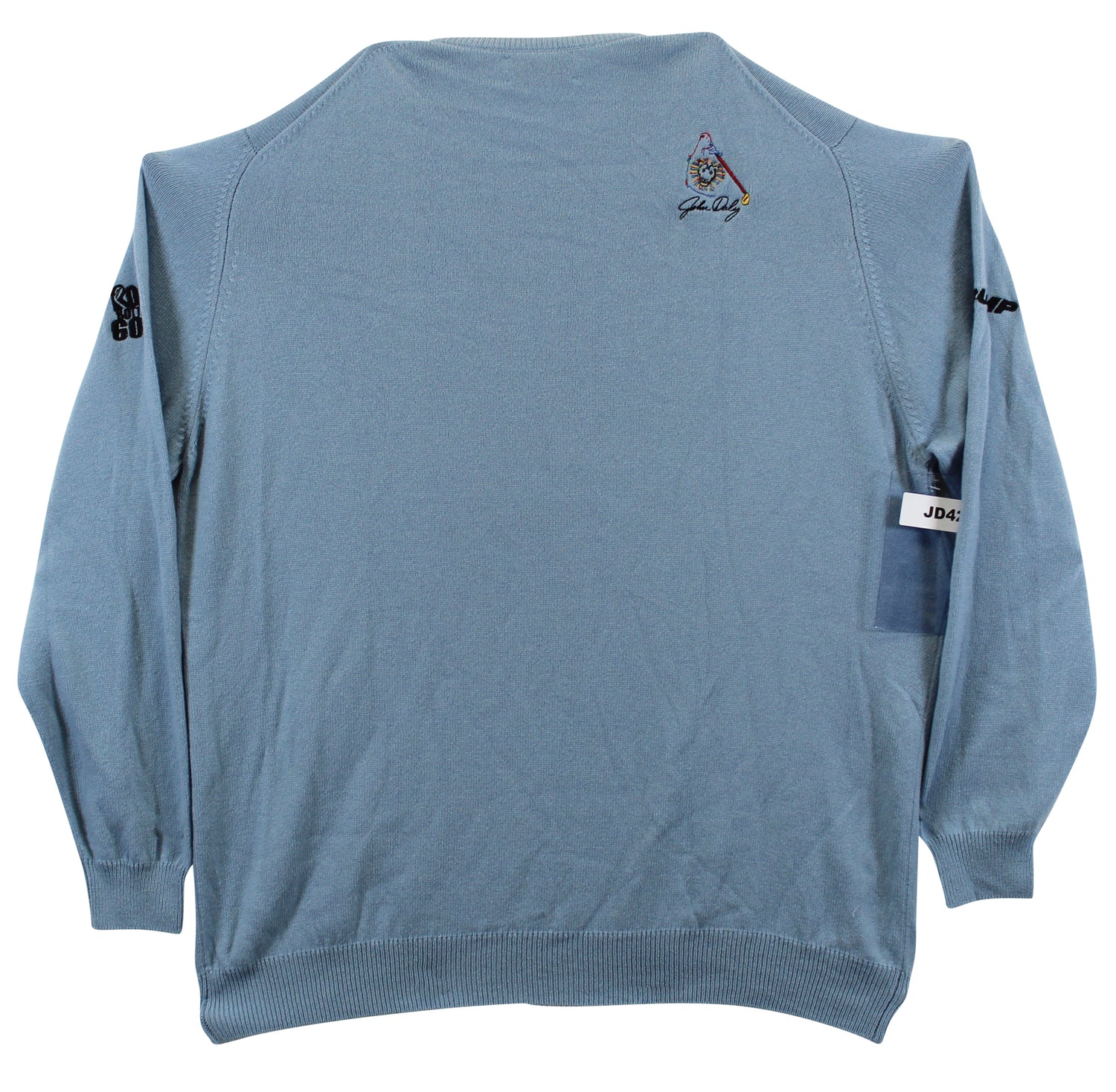 John Daly Signed Match Worn Light Blue Johnstons of Elgin Cashmere Sweater BAS