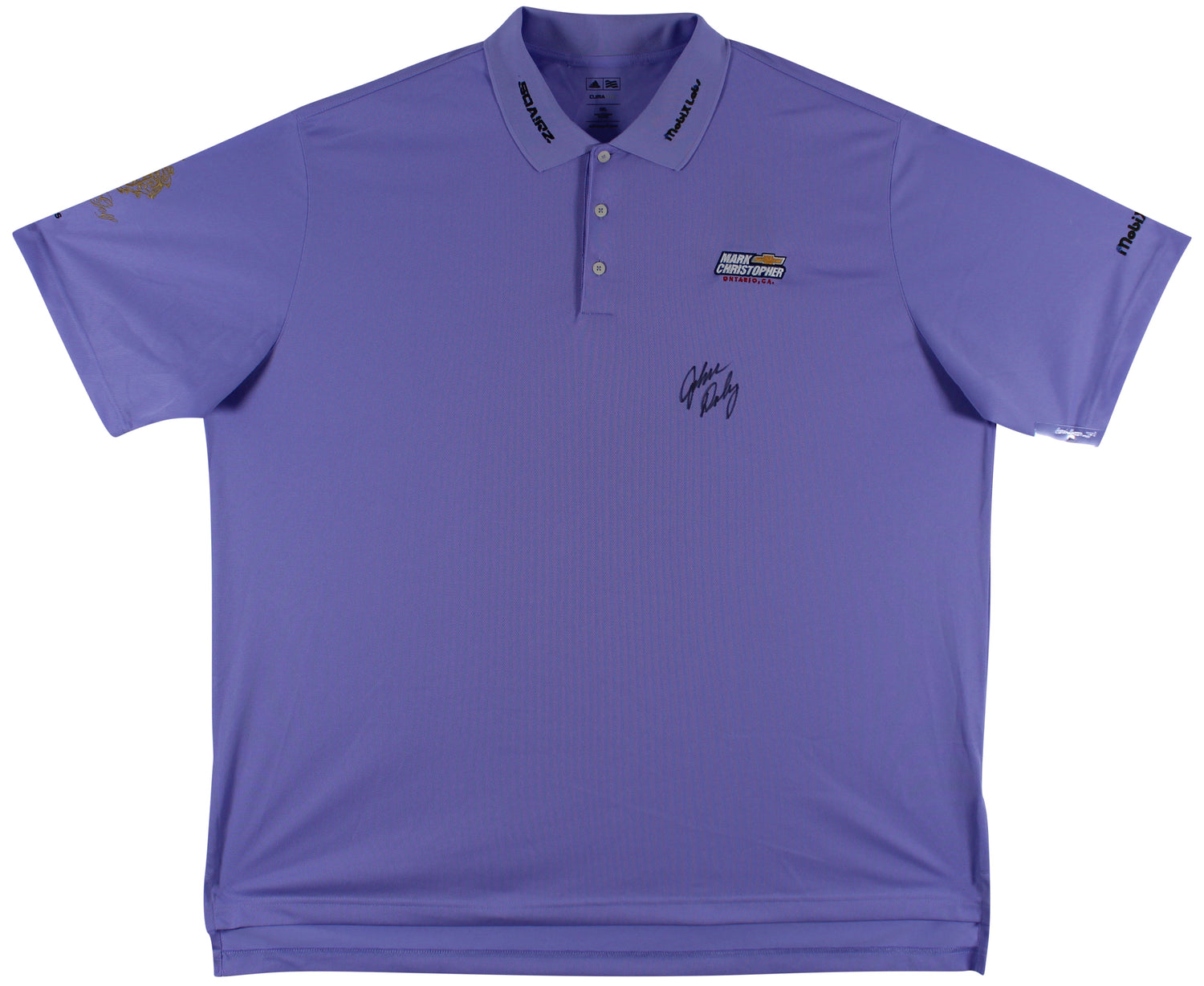 Own a piece of golf history with this Autographed Match-Worn Purple Sqairz Mobix Labs Mark Christopher Chevy Adidas Climalite Polo Shirt, personally signed by legendary golfer John Daly. This exclusive collector's item was worn by John Daly during competition and comes directly from his personal collection, making it a must-have for serious golf memorabilia enthusiasts.
