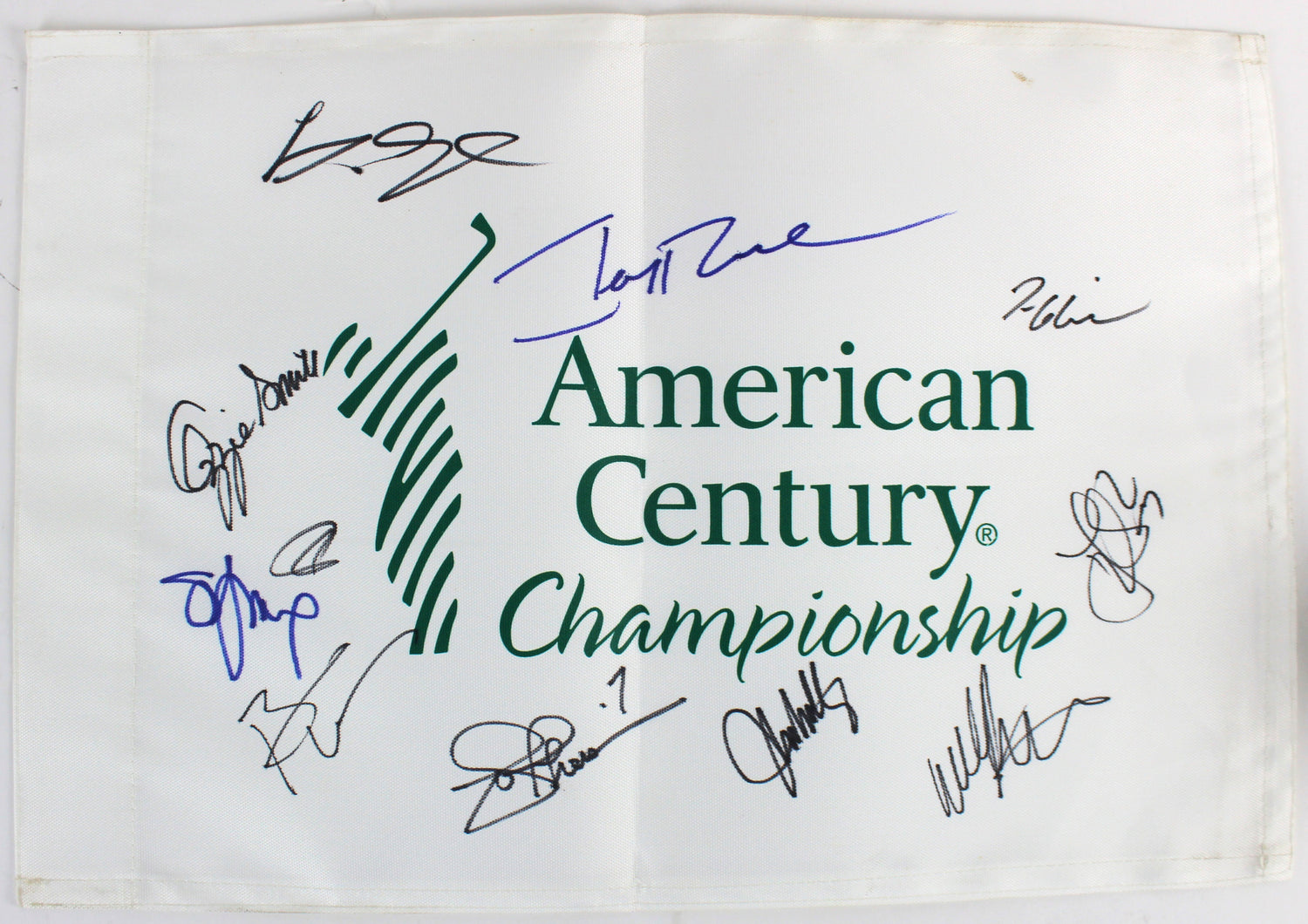 Own a piece of sports history with this Autographed American Century Championship Pin Flag, personally signed by an extraordinary lineup of sports legends and pop culture icons. This exclusive collectible includes authentic signatures from Jerry Rice, John Smoltz, Tom Glavine, Joe Theismann, Brian Urlacher, Steve Young, Ozzie Smith, Carson Palmer, TJ Oshie, Willie Robertson, and Ben Higgins.