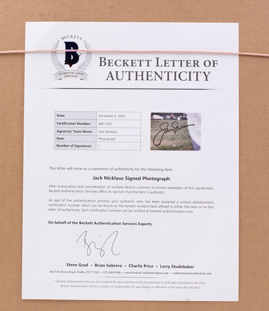 Own a piece of golf history with this Jack Nicklaus signed and framed 11x14 golf photo—a must-have for serious collectors and fans of the Golden Bear. Hand-signed by Jack Nicklaus, one of the greatest golfers of all time, this premium collectible has been authenticated by Beckett Authentication Services for ultimate peace of mind.