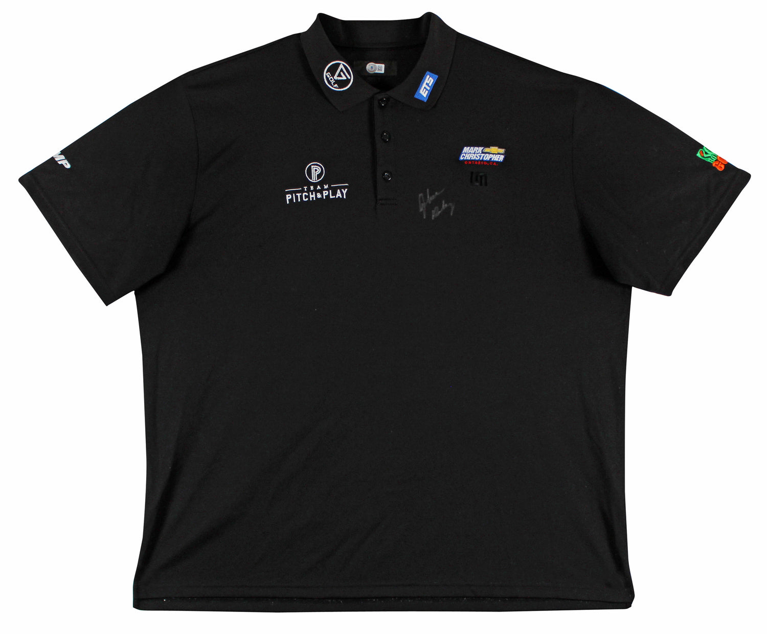 This Autographed Match Worn Black Loudmouth Pitch & Play Mark Christopher Trump ETS Rock Bottom Golf Polo Shirt is a true collector’s item, personally signed by John Daly and authenticated by Beckett Authentication Services (BAS). A must-have for golf enthusiasts and memorabilia collectors, this XX-Large polo carries the history of one of golf’s most charismatic legends.