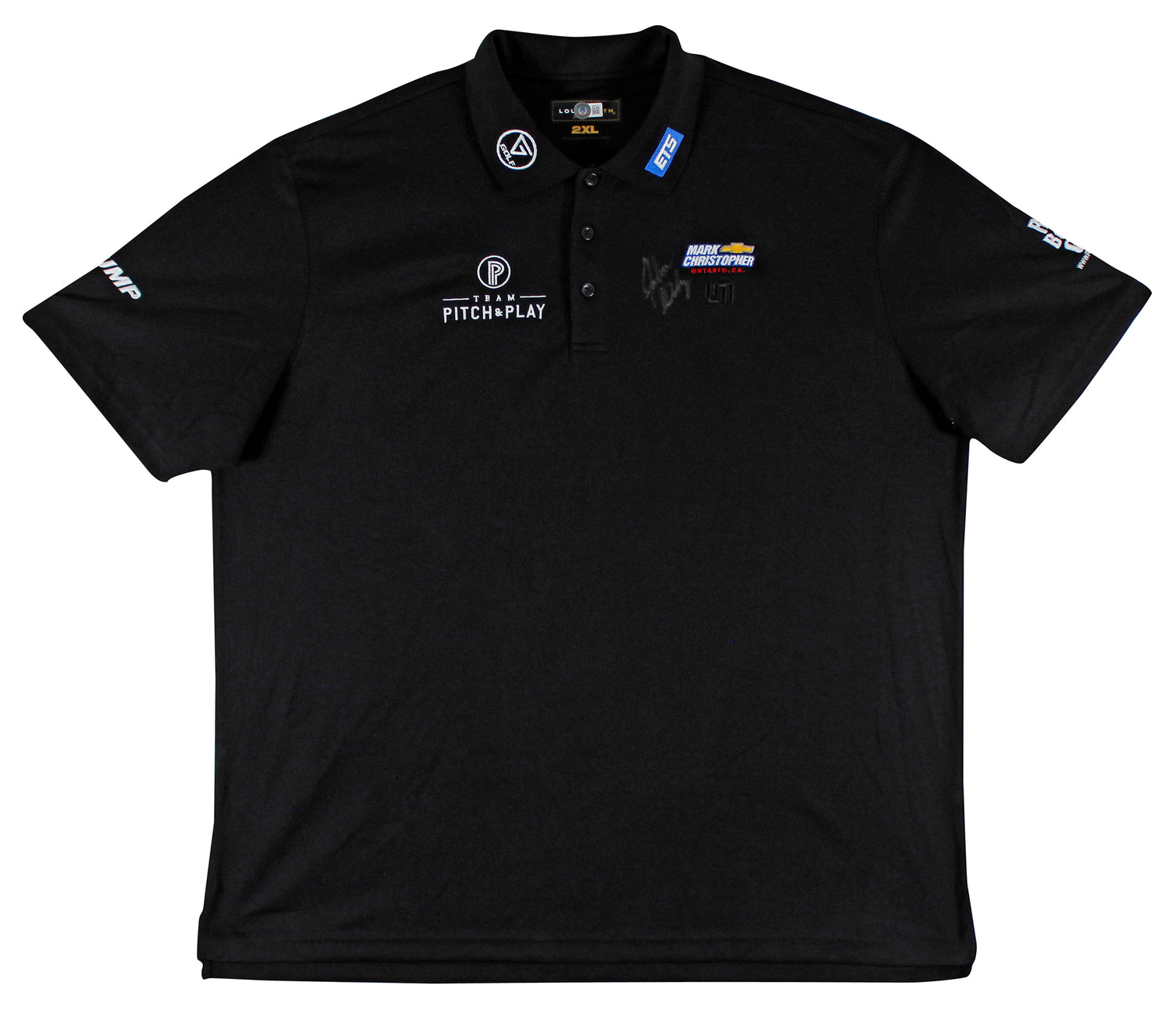 This Autographed Match-Worn Black Loudmouth Team Pitch & Play Mark Christopher Chevy Trump Rock Bottom Golf Polo Shirt was personally signed and worn by legendary golfer John Daly. A true collector’s piece, this one-of-a-kind polo is authenticated by Beckett Authentication Services (BAS) and comes with a hologram sticker featuring a scannable QR code for verification.