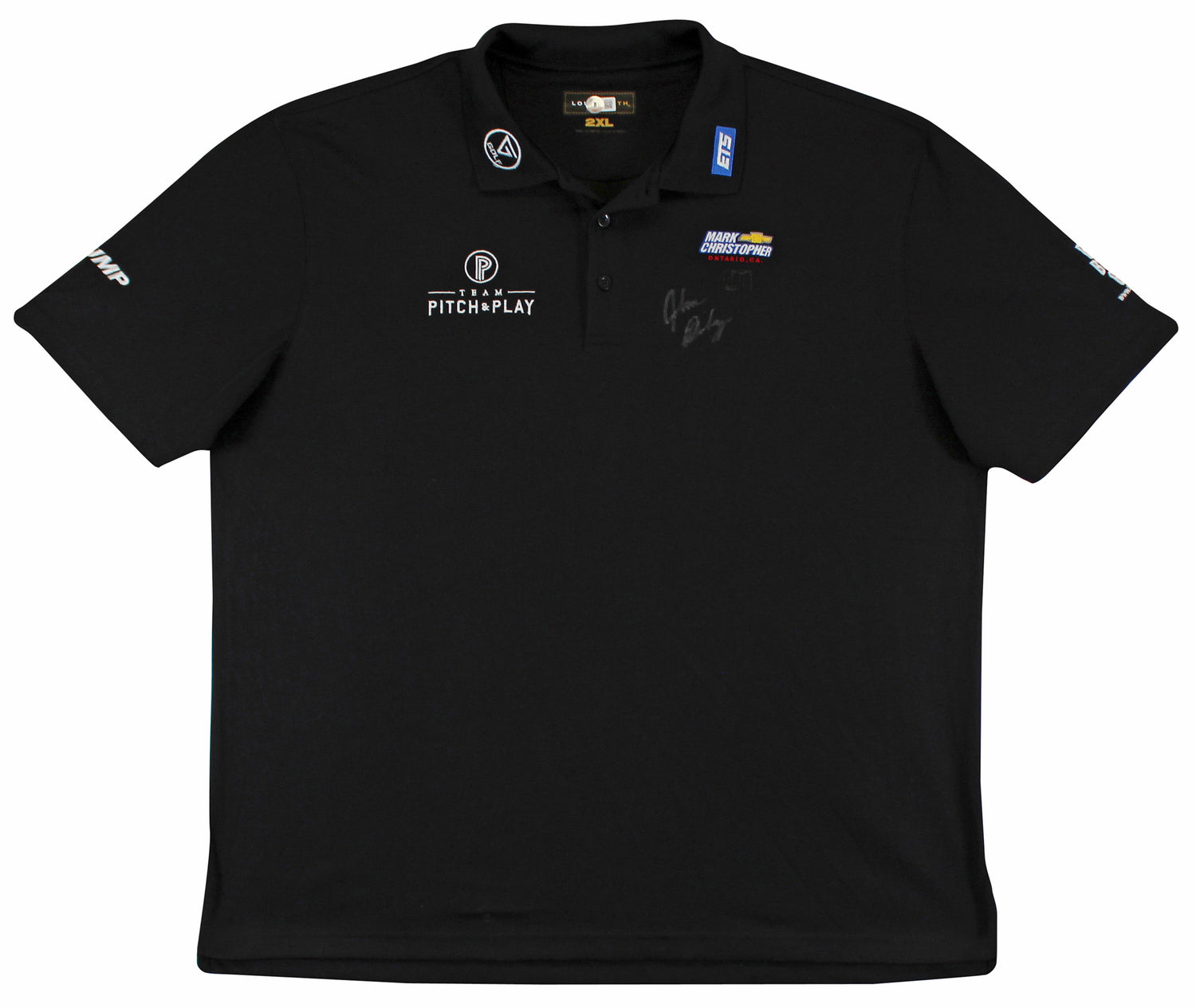 Own a piece of golf history with this Autographed Match Worn Black Loudmouth Team Pitch & Play Mark Christopher Chevy Trump Rock Bottom Golf Polo Shirt, personally signed by the legendary John Daly. This rare collectible isn’t just autographed—it was actually worn by John Daly during competition, adding unparalleled authenticity and provenance for serious collectors and fans alike.