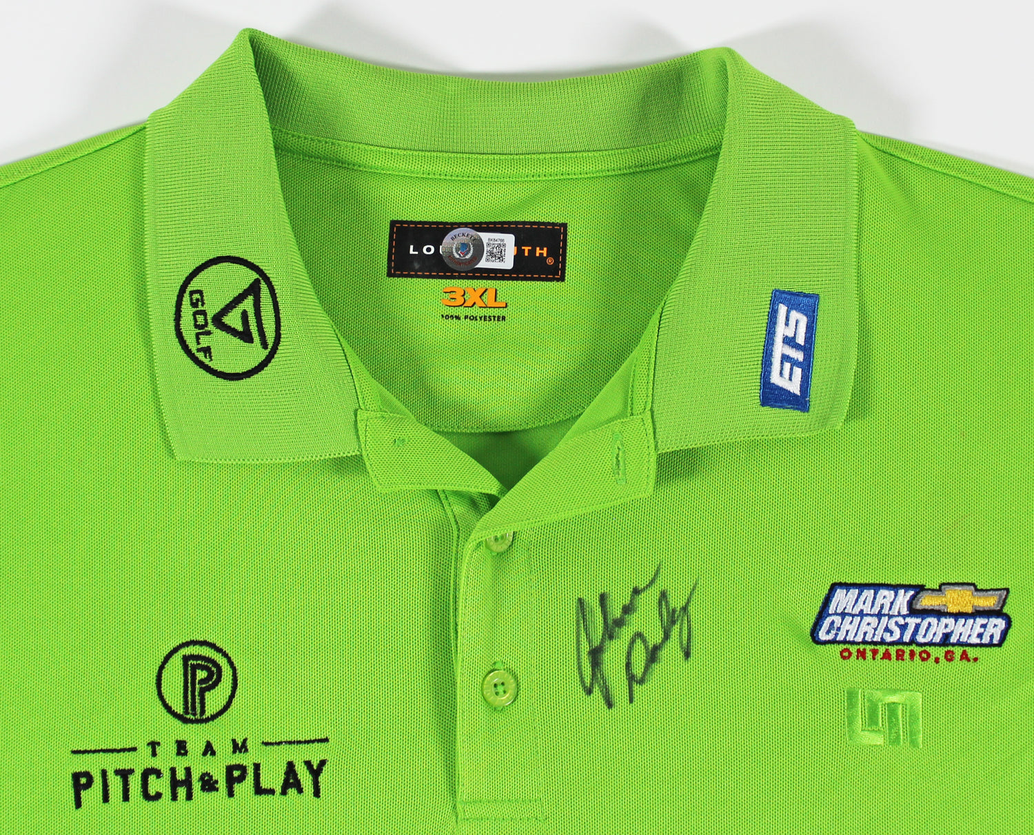 Own a piece of golf history with this Autographed Match-Worn Green Loudmouth Mark Christopher Pitch & Play Trump ETS Rock Bottom Golf Polo Shirt, personally signed by legendary golfer John Daly. This exclusive collectible is more than just an autograph—it's a part of the game, worn by Daly himself on the course.
