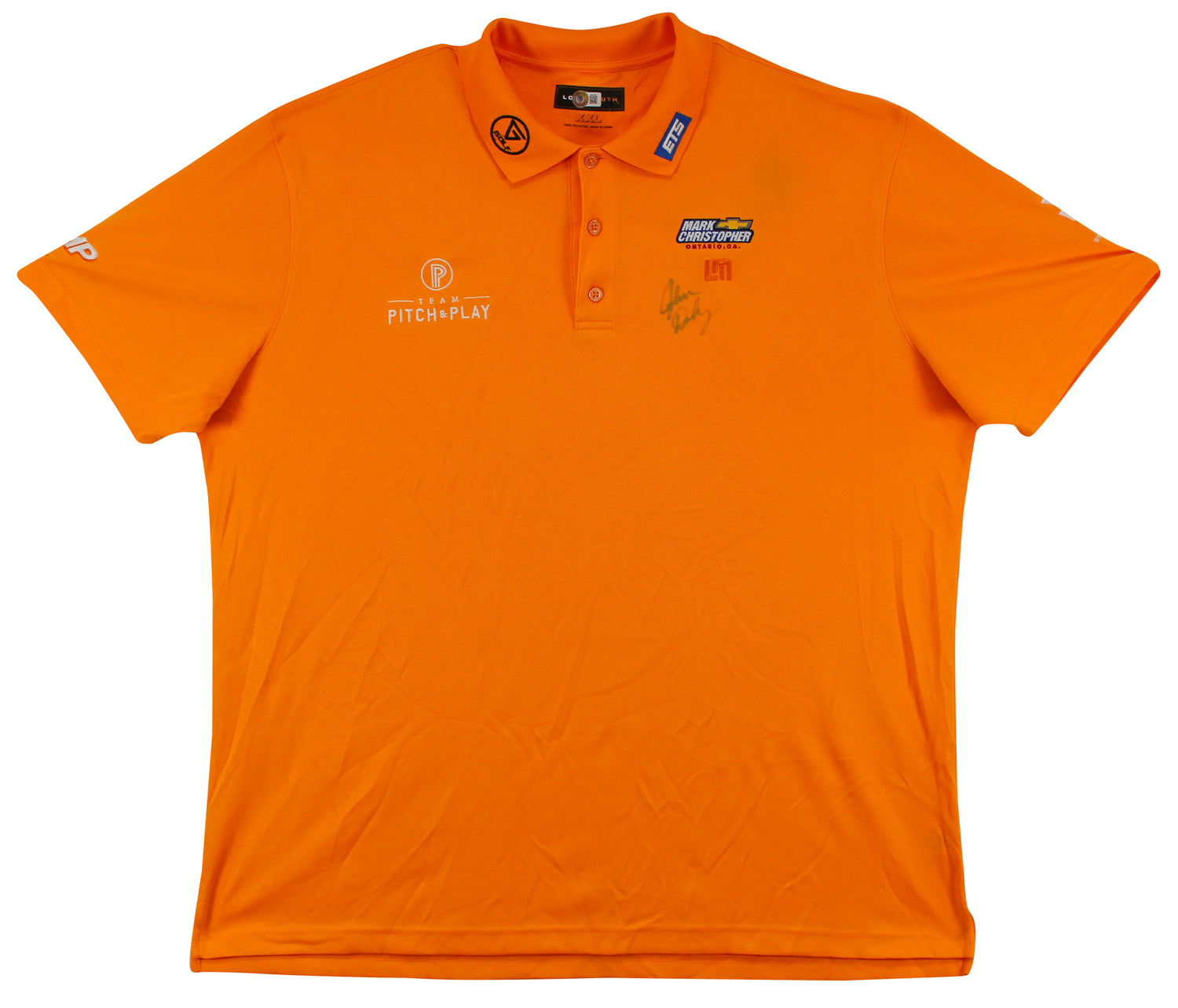 Own a piece of golf history with this Autographed Match Worn Orange Loudmouth Team Pitch & Play Mark Christopher Chevy Trump Polo Shirt, personally signed by legendary golfer John Daly. This rare collector’s item isn’t just signed—it was actually worn by John Daly during competition, adding unparalleled authenticity and value to your memorabilia collection.