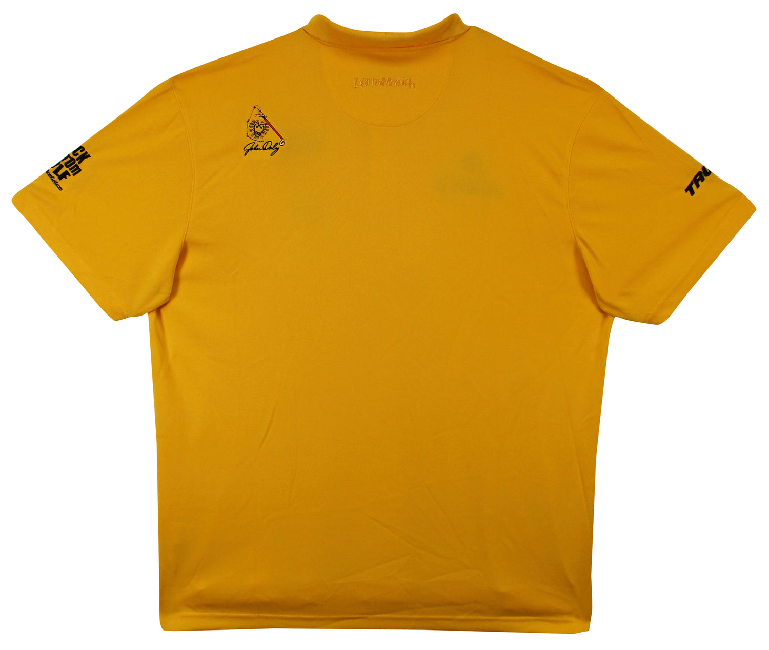 - Authentic Match-Worn Golf Polo – This vibrant yellow Loudmouth Mark Christopher Pitch & Play ETS Trump Rock Bottom Golf Polo Shirt was worn by John Daly during competition play.