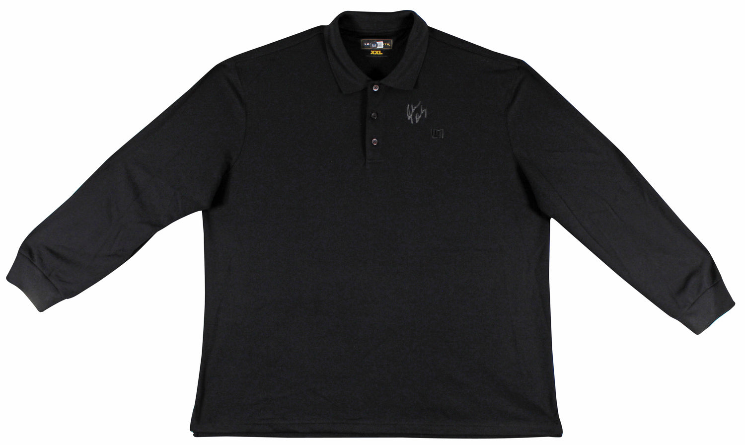 Own a piece of golf history with this Match Worn Black Long-Sleeved Loudmouth Team Pitch & Play Mark Christopher Chevy Trump Rock Bottom Golf Polo Shirt, personally autographed by John Daly. This exclusive shirt was worn by John Daly during competition and comes directly from his personal collection, making it a must-have for serious collectors and golf enthusiasts alike.