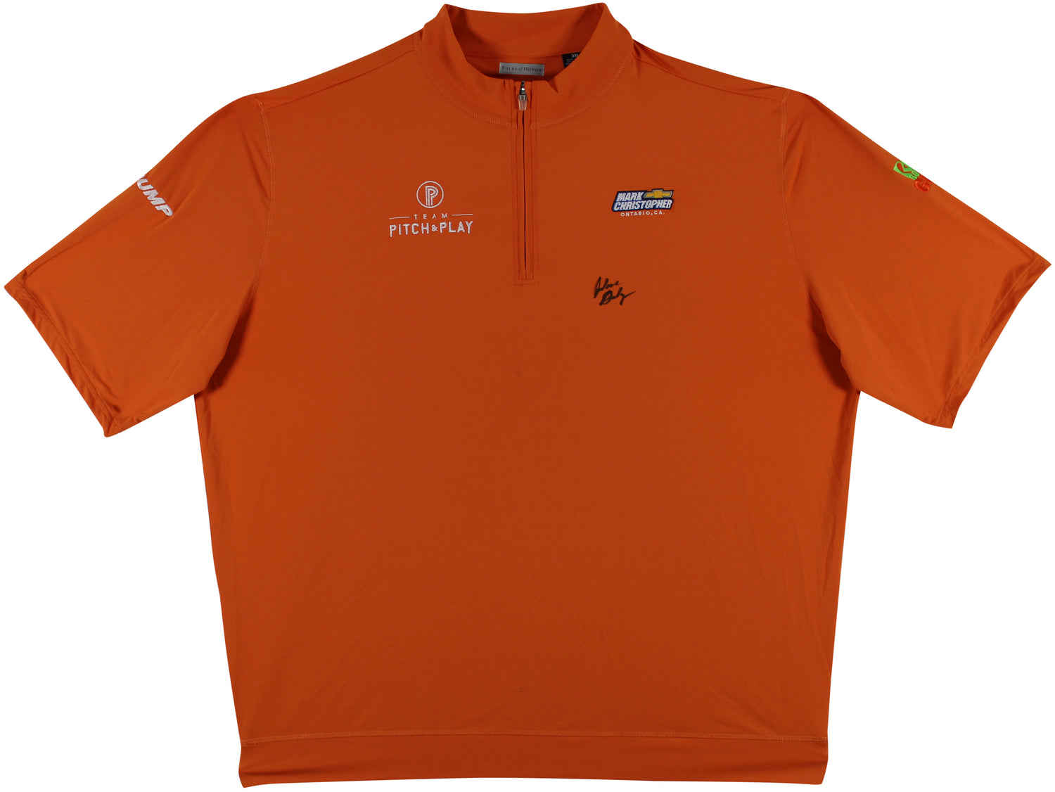 Own a piece of golf history with this Autographed Match-Worn Orange Team Pitch & Play Mark Christopher Chevy Folds of Honor Quarter Zip Shirt, personally signed by legendary golfer John Daly. This exceptional collectible isn't just a display piece—it's a match-worn item from Daly's personal collection, offering a rare opportunity for fans and collectors alike.