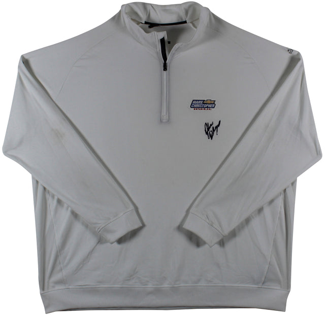 Own a piece of golf history with this Autographed Match Worn White Mark Christopher Adidas Quarter Zip Shirt, personally signed by John Daly. This exceptional collectible is more than just memorabilia—it's a rare, authenticated item straight from John Daly’s personal collection, perfect for golf enthusiasts and memorabilia collectors alike.