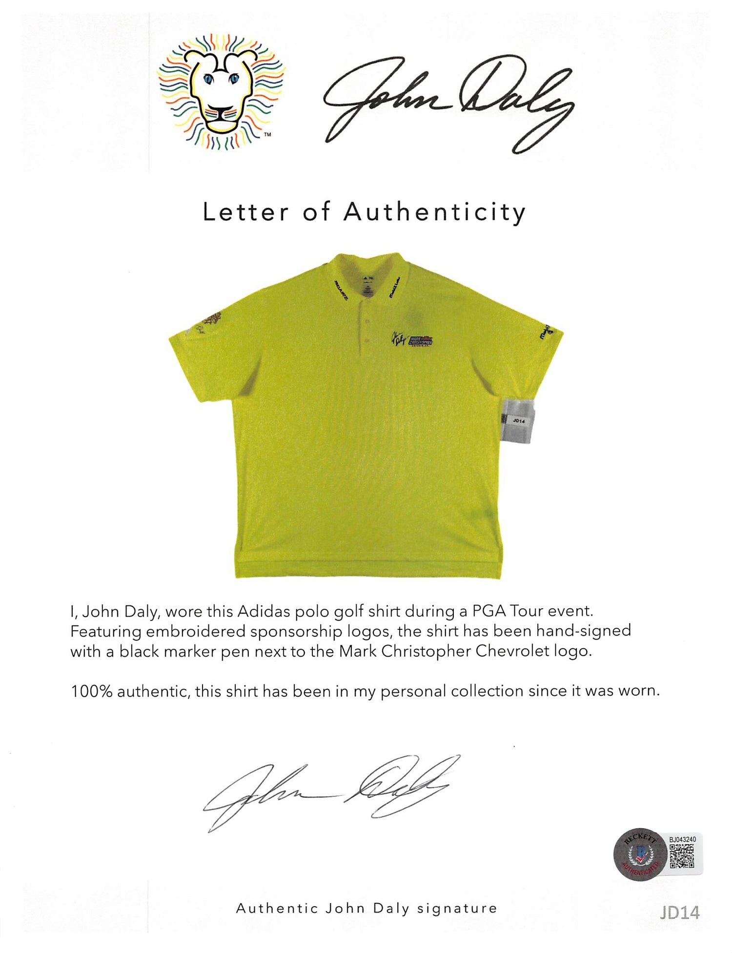 John Daly Signed Match Worn Yellow Adidas Climalite Polo Shirt BAS #BH00367 is backordered and will ship as soon as it is back in stock.