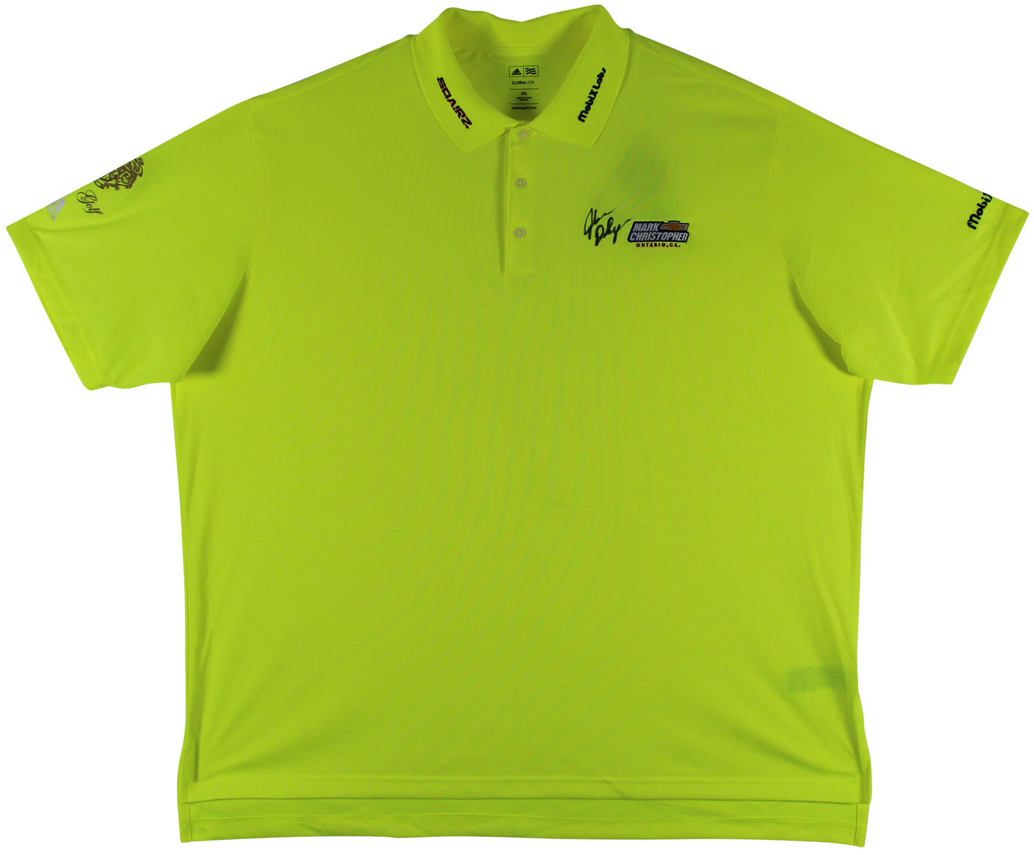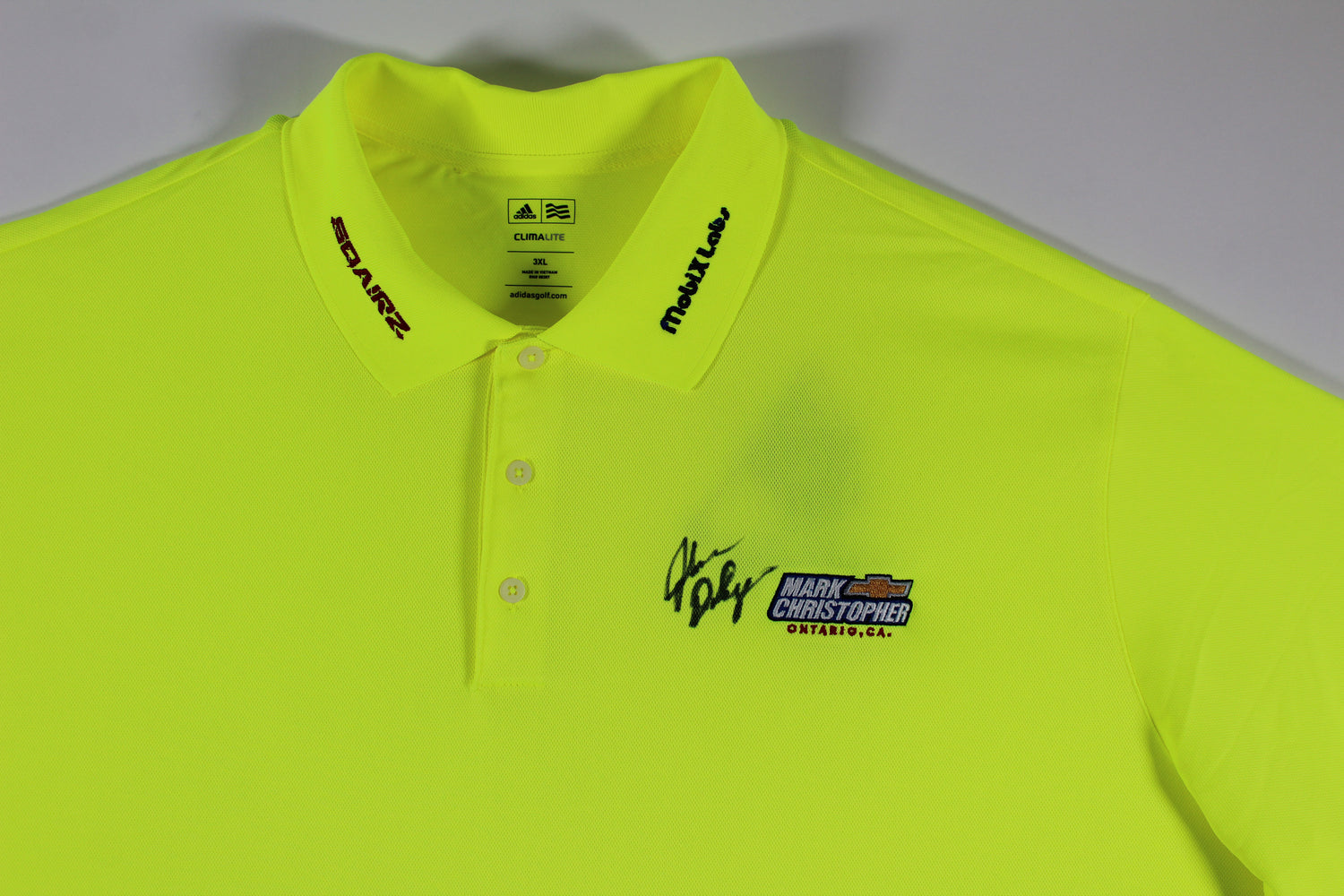 Own a rare piece of golf history with this Match-Worn Yellow Sqairz Mobix Labs Mark Christopher Chevy Adidas Climalite Polo Shirt, personally signed by golf legend John Daly. This exceptional collector's item was worn by Daly himself, making it a must-have for dedicated fans and memorabilia collectors alike.