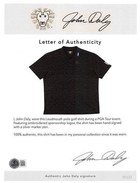 John Daly Authentic Signed Match Worn Black Loudmouth Polo Shirt BAS #BK84771