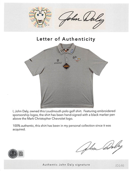 John Daly Authentic Signed Match Worn Grey Loudmouth Polo Shirt BAS #BK84751