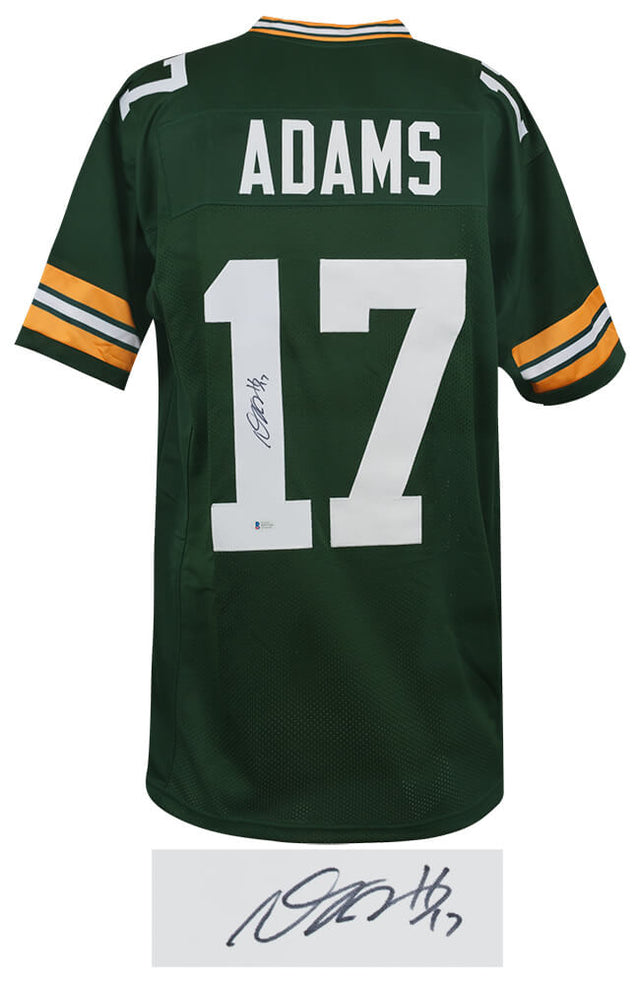 Davante Adams signed green custom football jersey. Item comes with a Beckett Authentication tamper evident numbered sticker and Certificate of Authenticity which can be verified online.