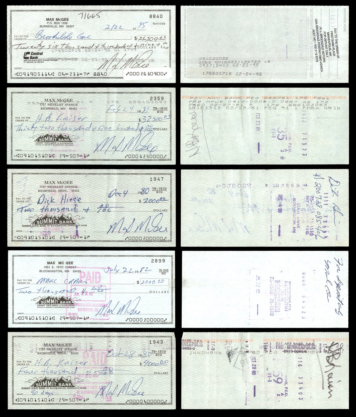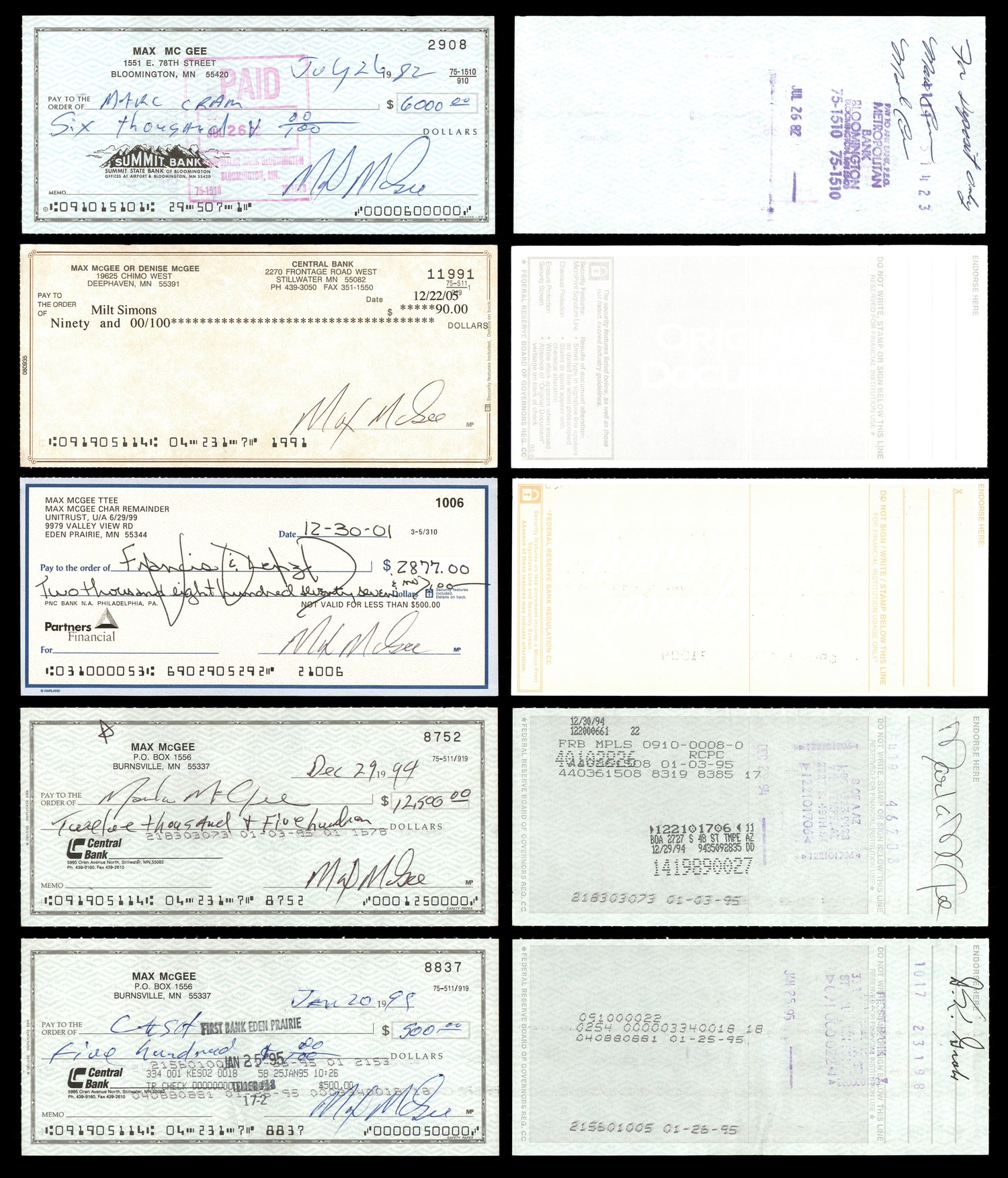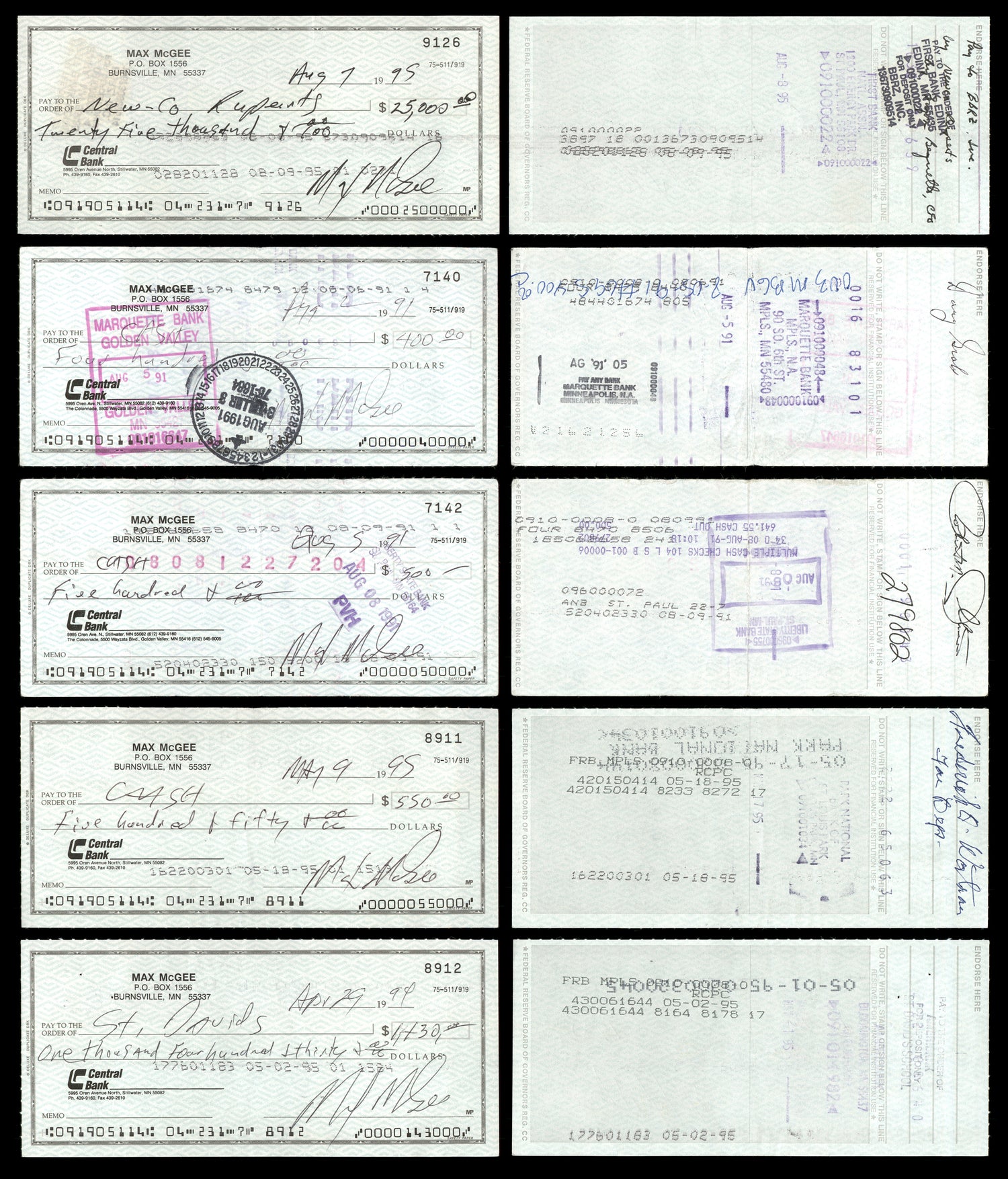- Lot of 20 Checks – Each check measures approximately 2.75" x 6", perfect for display.