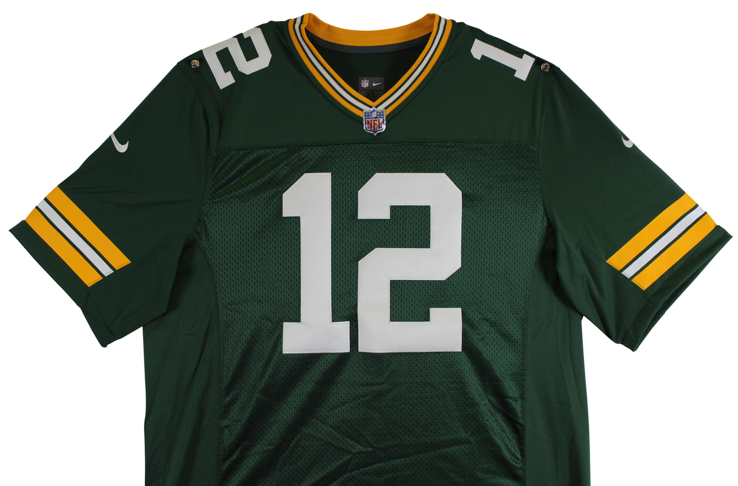 Celebrate one of the greatest quarterbacks in NFL history with this Autographed Green Nike Jersey personally signed by Aaron Rodgers of the Green Bay Packers. A prized addition for any serious collector or Green Bay fan, this officially licensed Nike jersey embodies the legacy of Rodgers—Super Bowl Champion, 4x NFL MVP, and a central figure in Packers history. Whether you're building your sports memorabilia collection or looking for the ultimate fan gift, this Aaron Rodgers signed jersey is a timeless tribute to a football icon.