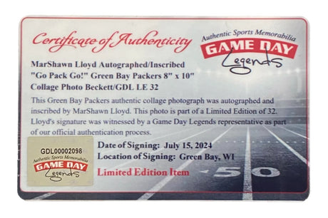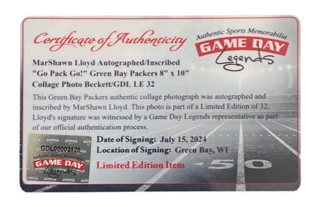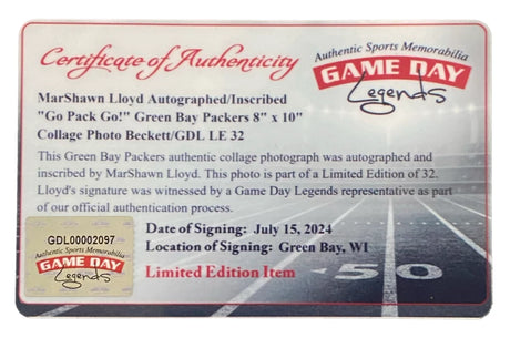 MarShawn Lloyd Autographed Green Bay Packers White Panel Football Beckett Witnessed