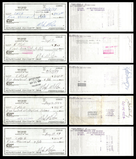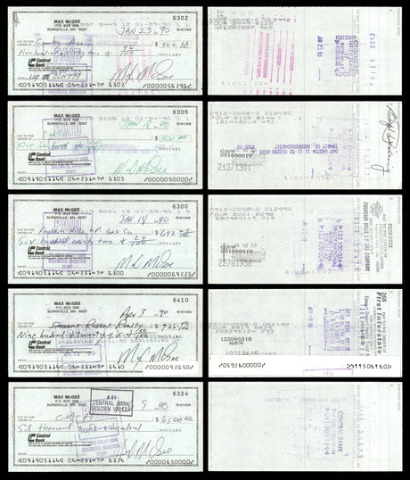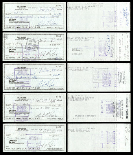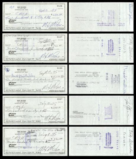 Max McGee Autographed 2.75x6 Check Green Bay Packers Lot of 20 SKU #174045