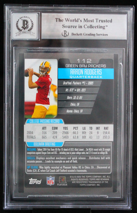 2005 Bowman #112 Aaron Rodgers RC Green Bay Packers BGS Autograph 10