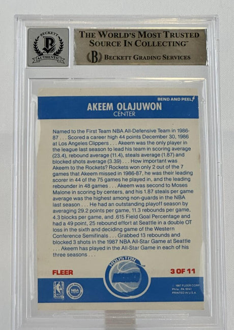 Very low stock (1 unit)$199Unit price /Unavailable1988-89 Fleer #53 Hakeem Olajuwon Auto Houston Rockets BGS Autograph 10