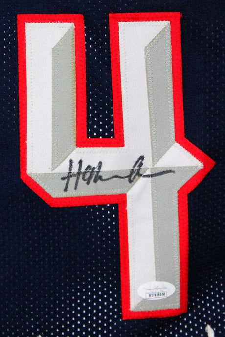 Very low stock (1 unit)$1,409Unit price /UnavailableHakeem Olajuwon Autographed Blue Jersey- JSA Witnessed *Black