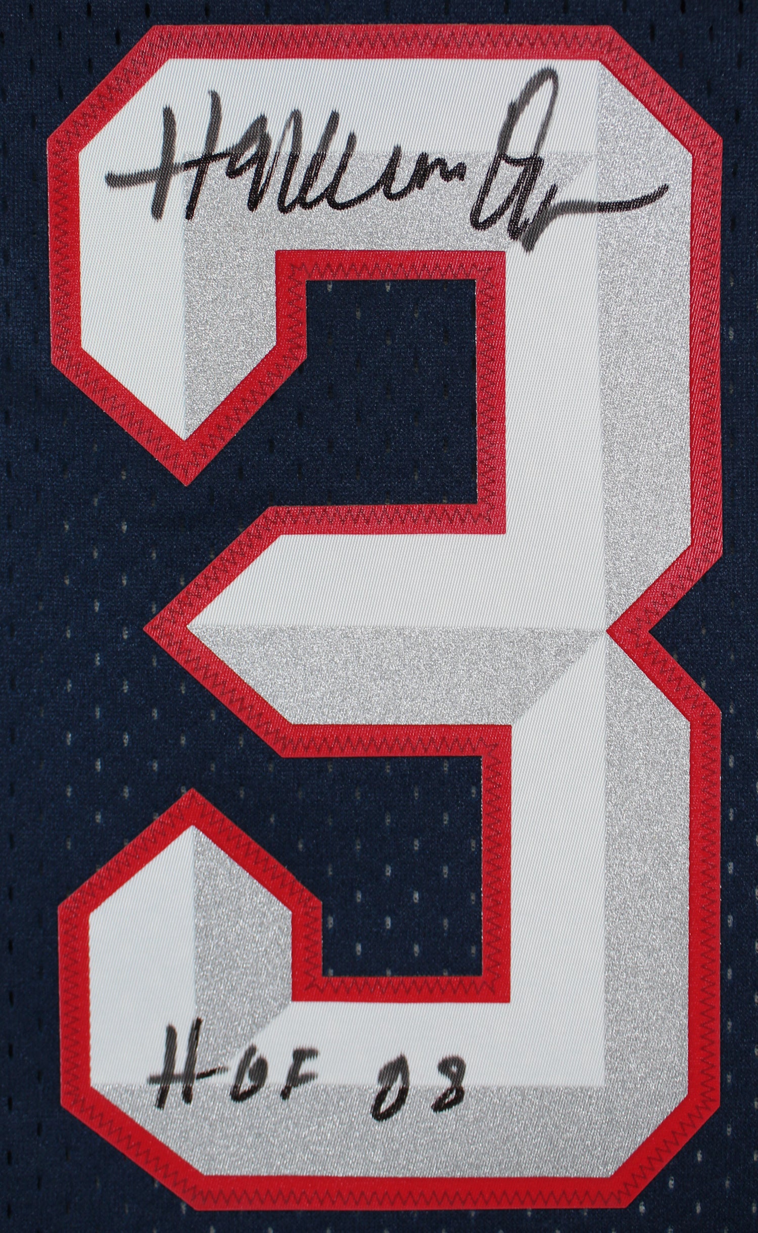 Own a piece of basketball history with this Autographed Navy Blue Mitchell & Ness Jersey, personally signed by Hakeem Olajuwon of the Houston Rockets. This XL-sized, custom-stitched jersey features Olajuwon’s signature along with the special inscription "HOF 08", celebrating his induction into the Basketball Hall of Fame in 2008.
