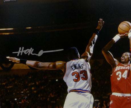 Hakeem Olajuwon Houston Autographed 16x20 PF Fade Away Jumper Photo v. Knicks- B