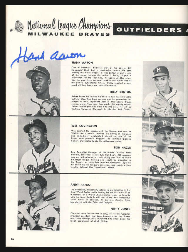- Autographs of five 1957 Milwaukee Braves icons, including Hall of Famers Hank Aaron, Warren Spahn, and Eddie Mathews.
