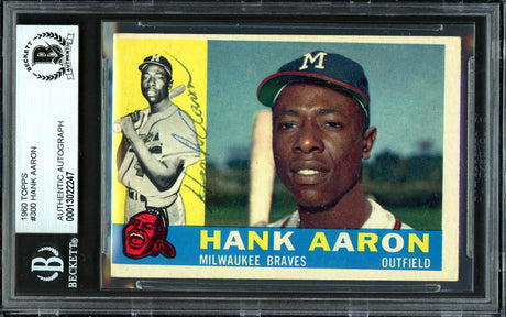 Hank Aaron Autographed 1960 Topps Card #300 Milwaukee Braves Vintage Signature Beckett BAS #13022247