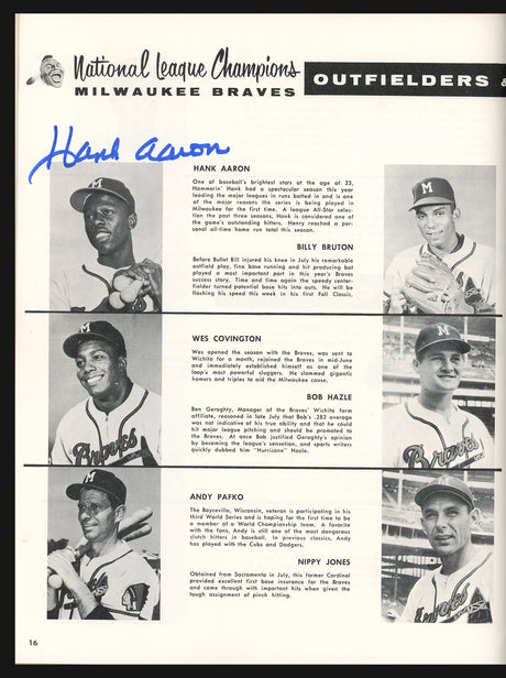 Hank Aaron Autographed 11x14 Photo Milwaukee Braves "WS Champs 57" JSA #M61836