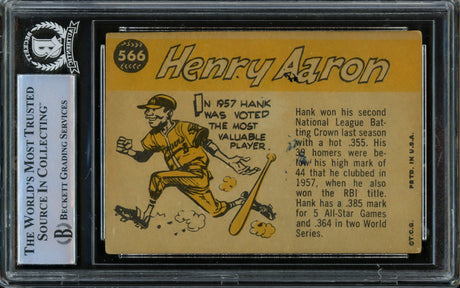 Hank Aaron Autographed 1960 Topps Card #566 Milwaukee Braves Beckett BAS #14682507