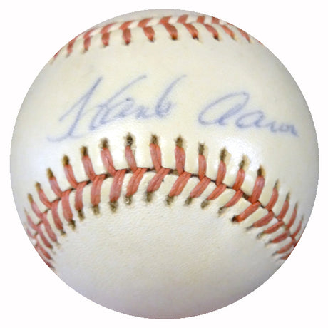 Hank Aaron Autographed Official League Baseball Atlanta Braves Vintage Signature Beckett BAS #Q67669
