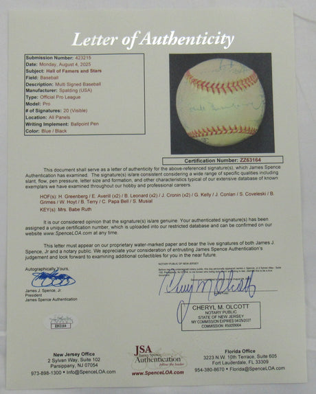 Hall of Famers and Stars Hank Greenberg Signed Auto Baseball JSA LOA ZZ63164