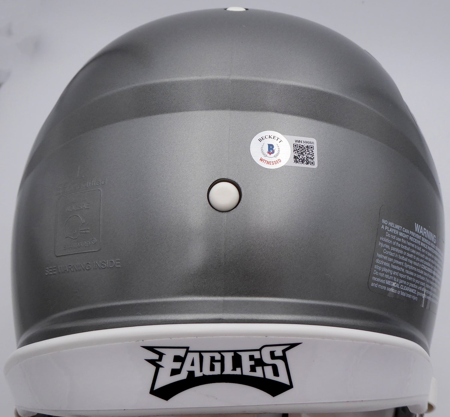 DeVonta Smith Autographed Philadelphia Eagles Flash Silver Full Size Authentic Speed Helmet "Fly, Eagles, Fly" (Smudged) Beckett BAS QR #WN30088
