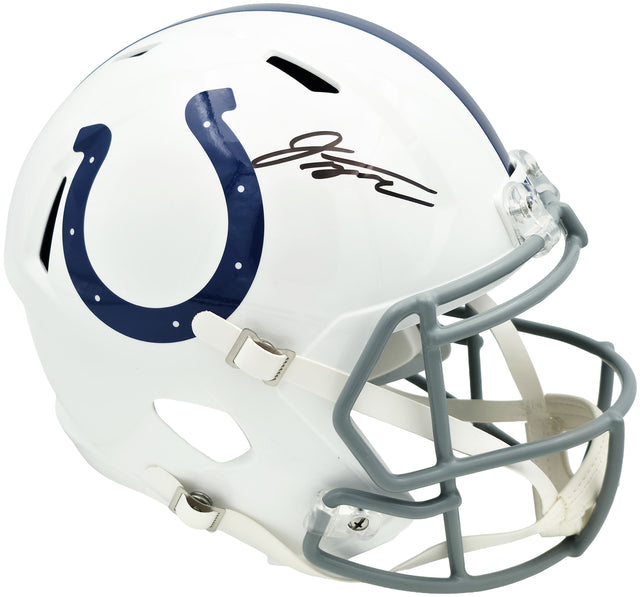 Add a standout piece to your collection with this Indianapolis Colts White Full Size Speed Replica Helmet, hand signed by star running back Jonathan Taylor. Known for his explosive plays and dynamic presence on the field, Taylor has quickly become a centerpiece for the Colts and one of the league’s top talents. Whether you're a die-hard Colts fan or a memorabilia enthusiast, this autographed helmet offers lasting value and powerful display appeal.
