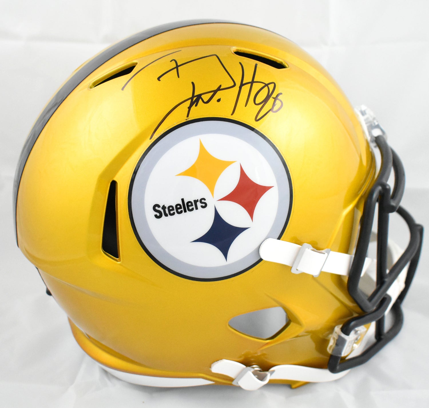 • Official T.J. Watt autograph on full-size Pittsburgh Steelers Riddell Flash Speed Replica helmet