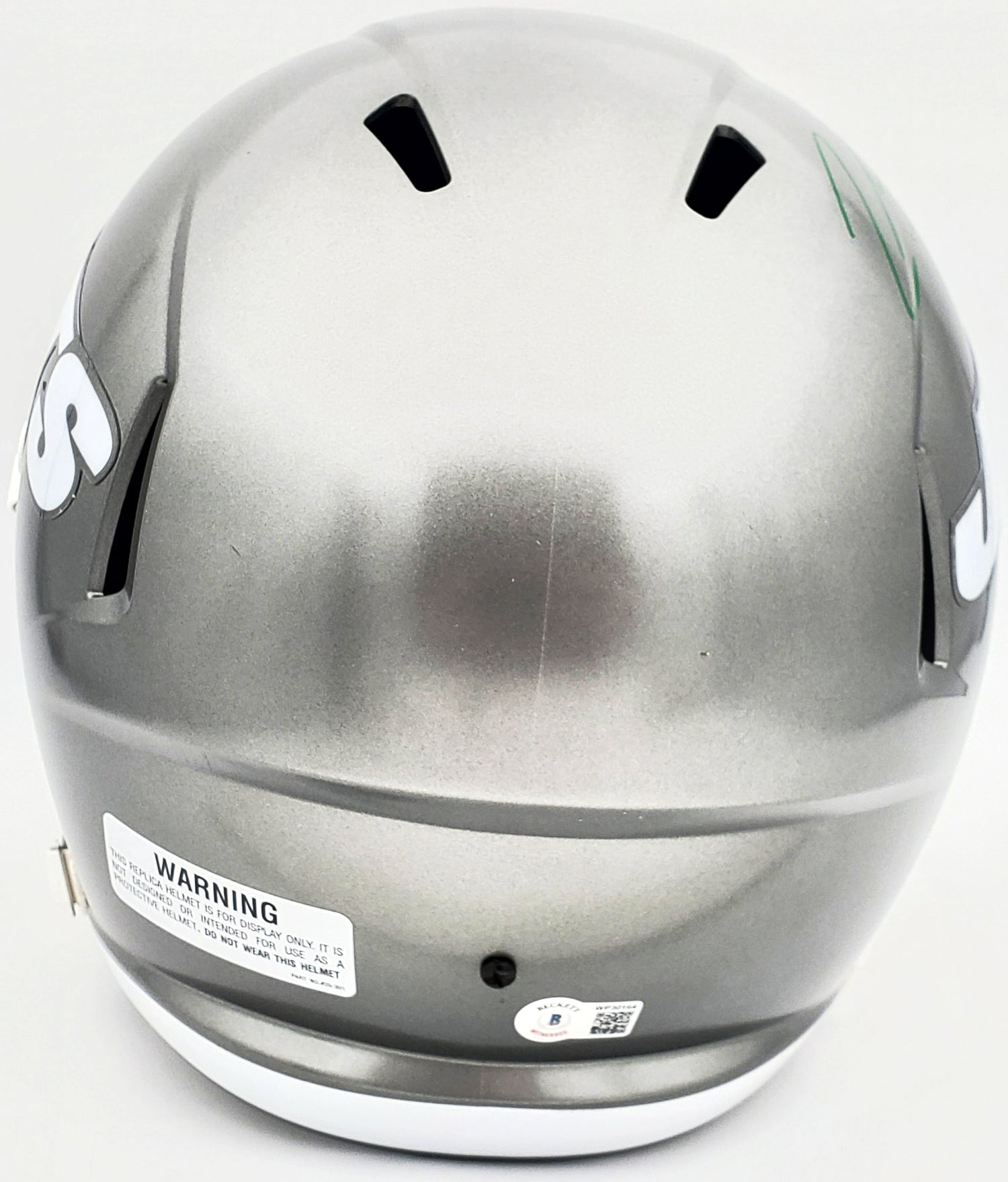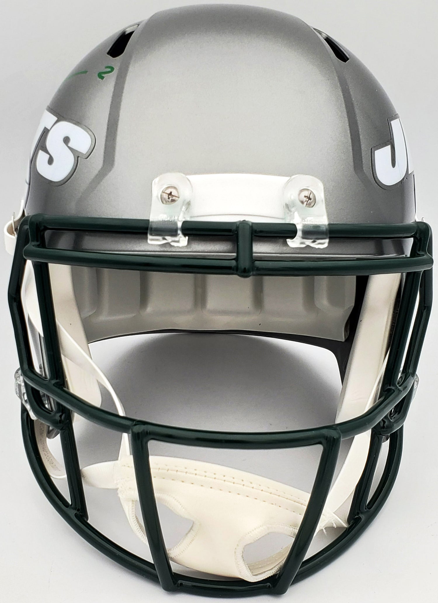- Official New York Jets Flash Silver Full-Size Replica Speed Helmet – a striking addition to any collection.