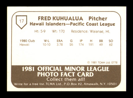 Fred Kuhaulua Autographed 1981 TCMA Rookie Card #17 Hawaii Islanders SKU #248204
