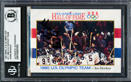 Herb Brooks Autographed 1991 Impel Card #71 1980 Team USA Beckett BAS #18283353