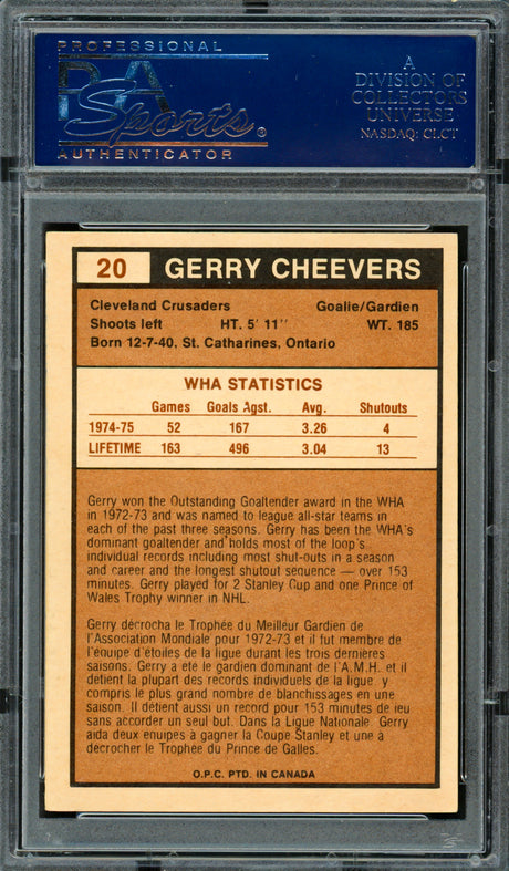 Very low stock (1 unit)$79Unit price /UnavailableGerry Cheevers Autographed 1975-76 O-Pee-Chee WHA Card #20 Cleveland Crusaders PSA/DNA #83466477
