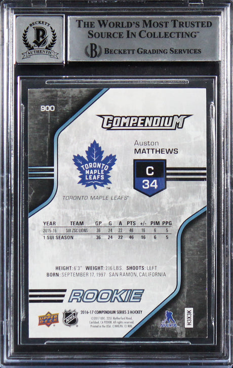 Auston Matthews Signed 2016 UD Compendium Blue #900 RC Card Auto 10! BAS Slabbed