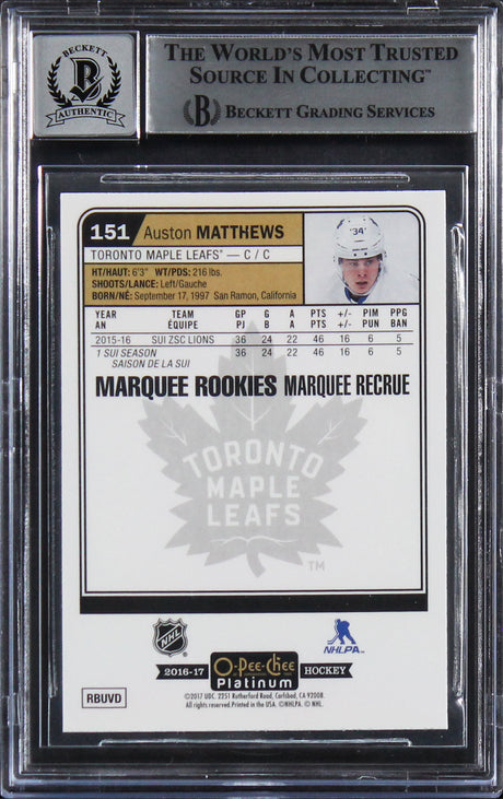 Auston Matthews Signed 2016 O-Pee-Chee Platinum #151 RC Card Auto 10! BAS Slab