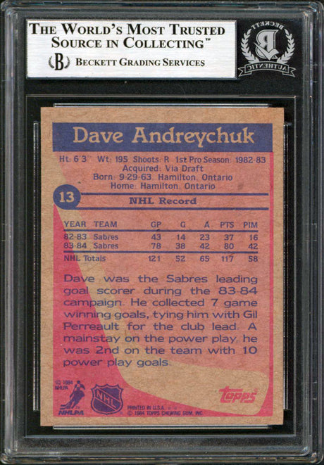 Very low stock (1 unit)$119Unit price /Unavailable Sabres Dave Andretchuk Authentic Signed 1984 Topps #13 Card Autographed BAS Slab