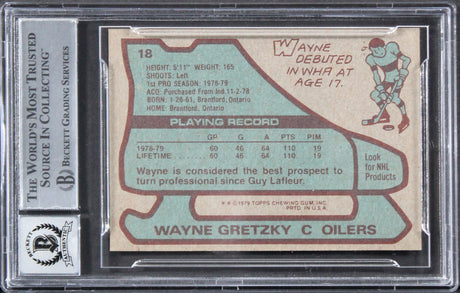 Oilers Wayne Gretzky Signed 1979 Topps #18 Rookie Card Auto 10! BAS Slabbed