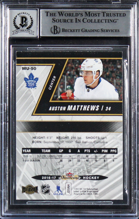 Auston Matthews Signed 2016 Fleer Showcase Metal #MU50 Card Auto 10! BAS Slabbed